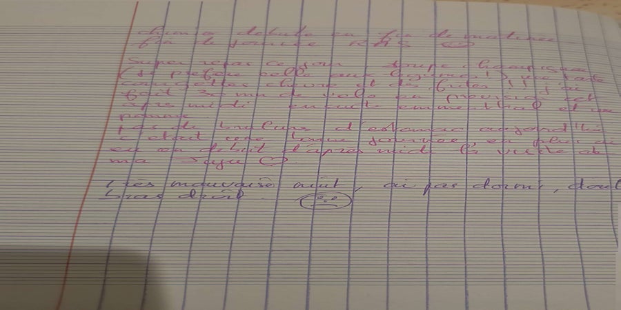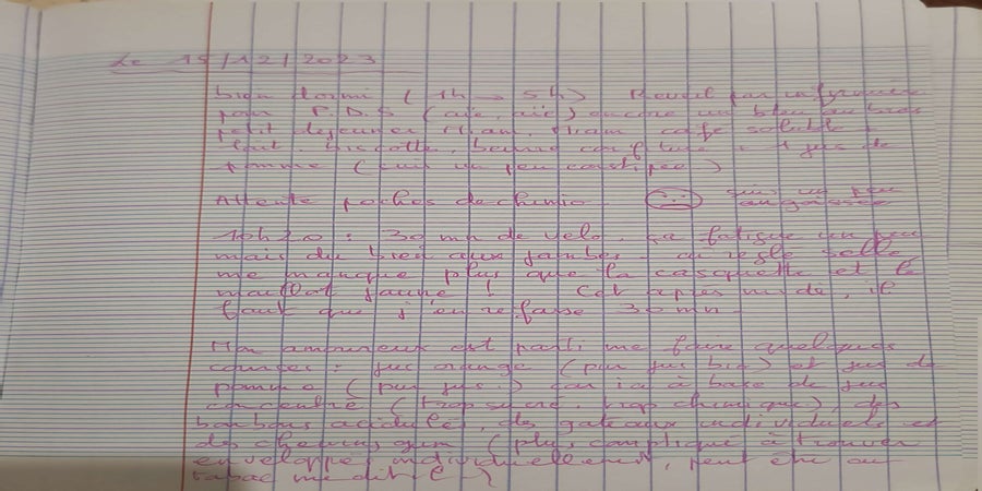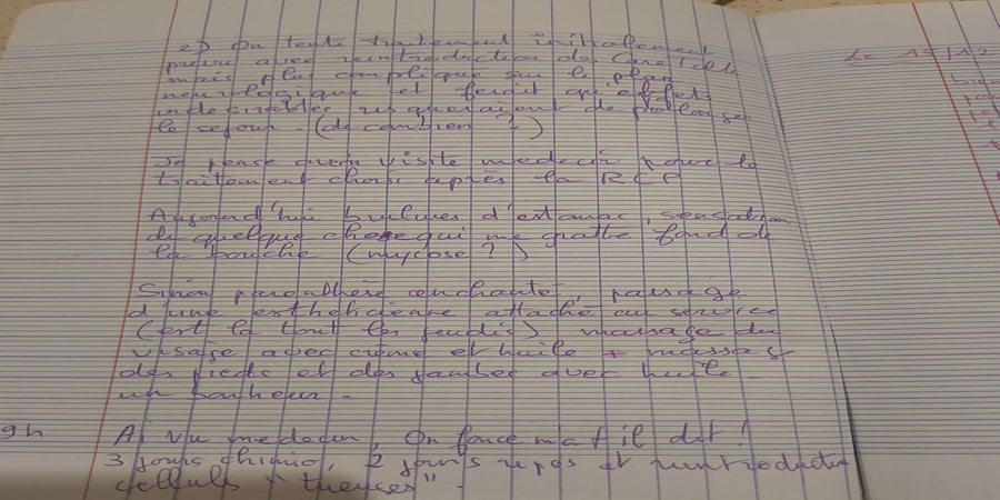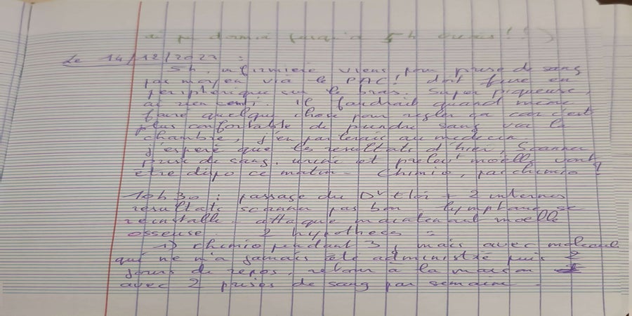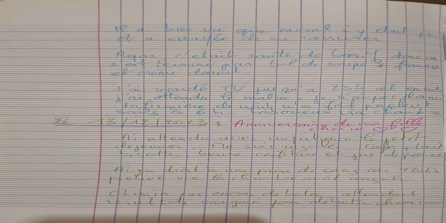 Maman a tenu quelques jours un petit cahier puis a stoppé quand cela a du devenir trop difficile physiquement.